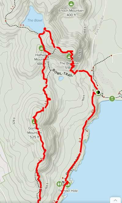 On our first full day in Acadia, we decided to dedicate the day to hiking. We parked just past the Park Loop Road entrance station (near Sand Beach) and headed toward one of the more interesting mountains: The Beehive.