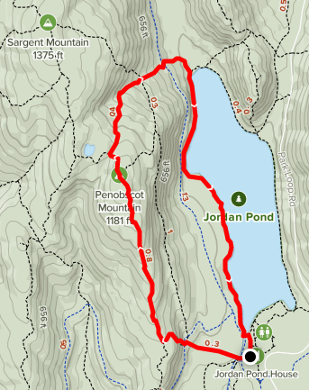 - left (south) also heads to the top of Penobscot, but via the Jordan Cliffs Trail
