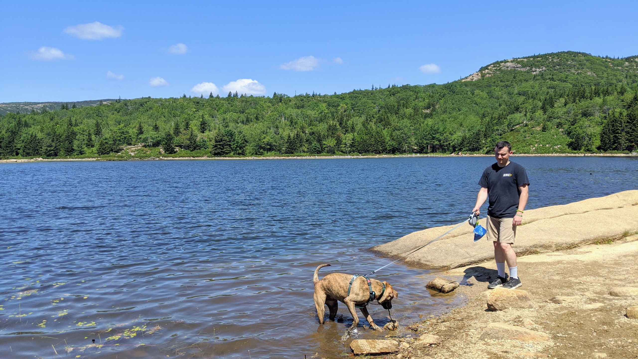 We chose to start our hike by traveling up the west edge of Jordan Pond. The path was made of soft pine loam soil interspersed with glacial rocks and man-made wooden boardwalks.