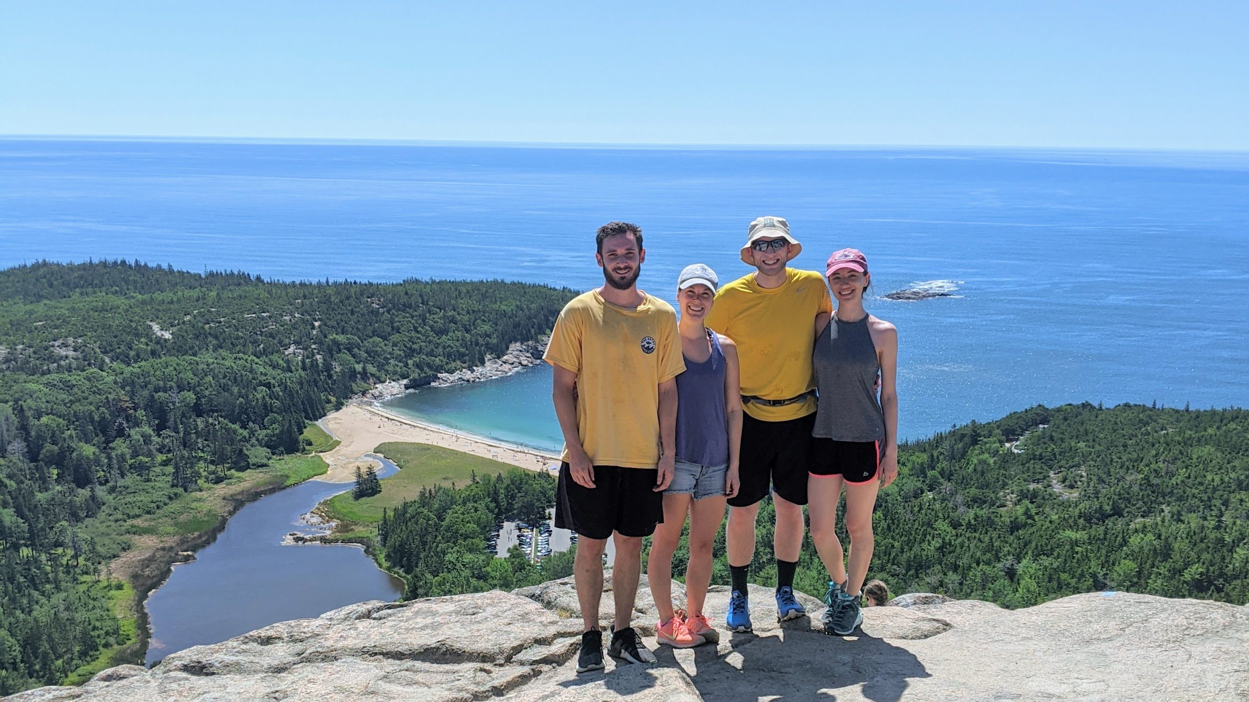 Hans and I began August 2020 in Acadia National Park with my brother and three of our friends. We stayed at Somes Sound View Campground, located on Mount Desert Island, just across the Somes Sound from the majority of Acadia National Park’s attractions. We were happy to find that the campsites generally had some space between them, and that there were tons of portable toilets distributed around the grounds – which we witnessed being cleaned frequently. The toilets were stocked with hand sanitizer, but we kept a bar of soap by our water spigot to use instead.
