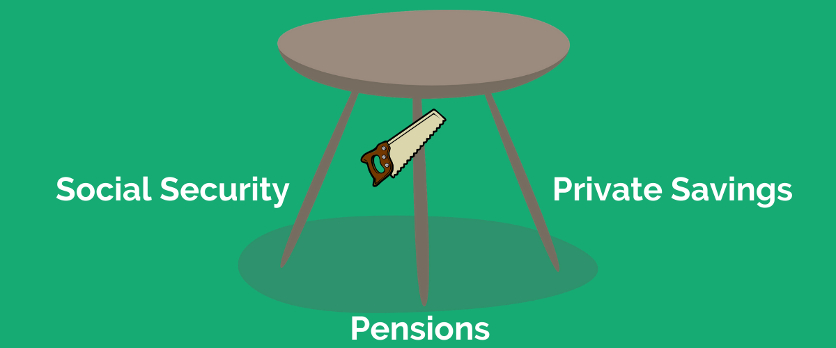 There are still some examples of pension programs out there, particularly with public municipalities and governments, but by and large the days of pension programs are behind us. Knowing that the average worker now has just Social Security and their own private savings to count on in retirement, it is very important that private savings are made beefy enough to support the retirement stool in lieu of the pension leg.